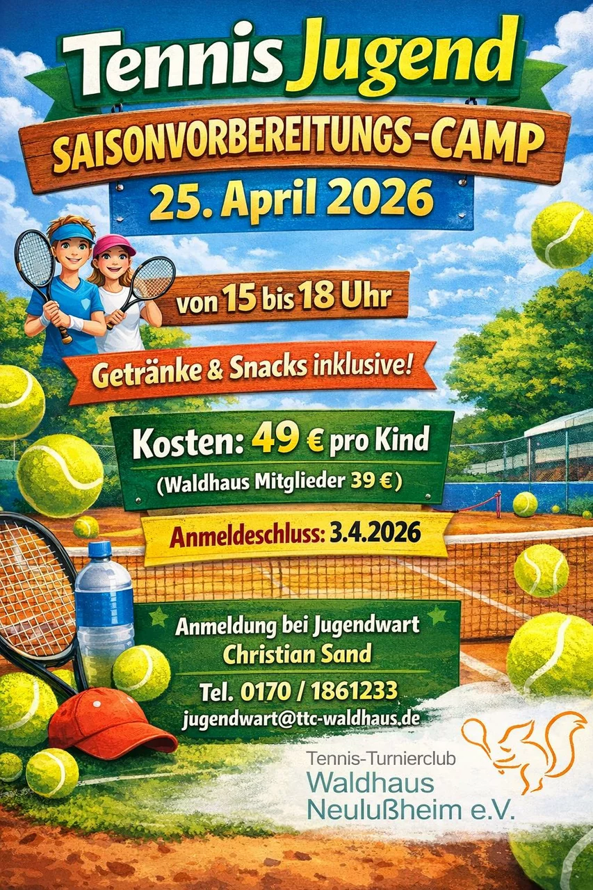 Am Samstag, den 25. April veranstaltet der TTC ein Tennis Jugend Saisonvorbereitungs-Camp. Mitglieder und Nichtmitglieder, Anfänger und Fortgeschrittene sind gleichermaßen willkommen.